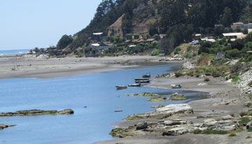 Entrada a la costa curicana, lugar donde desemboca el Río Mataquito donde se puede comprar pescados como reineta, merluza y pejerreyes.